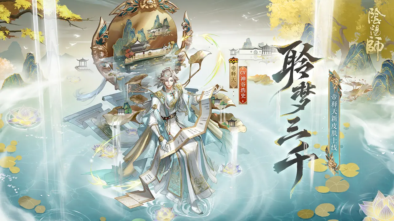 帝释天新皮肤·聆梦三千 将于12月1日0:00上线!可通过花合战·师走活动获取,参与活动达到指定条件即可获得限定头像框「翠轩莲尘」等奖励。